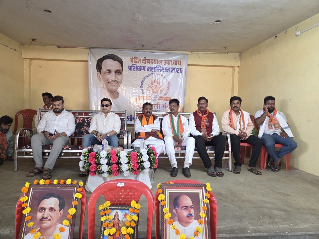 भारतीय जनता पार्टी एटापल्ली मंडळाच्या वतीने आयोजित पंडित दीनदयाल उपाध्याय प्रशिक्षण महाअभियान – २०२६ अंतर्गत कन्याका माता मंदिर सभागृह, एटापल्ली येथे भव्य प्रशिक्षण कार्यशाळेचे आयोजन करण्यात आले. या कार्यशाळेला माजी खासदार तथा भाजप अनुसूचित जनजाती मोर्चाचे राष्ट्रीय महामंत्री डॉ. अशोकजी नेते यांनी प्रमुख उपस्थिती दर्शवून उद्घाटन सत्रात मार्गदर्शन केले, तर माजी राज्यमंत्री राजे अमरीश राव महाराज आत्राम यांच्या हस्ते दीपप्रज्वलन करून कार्यशाळेची सुरुवात करण्यात आली.