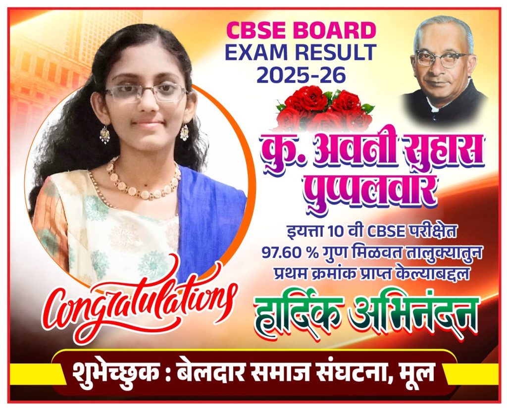 बेलदार समाजातील या कन्येने मिळवलेल्या या यशाबद्दल संपूर्ण परिसरातून तिचे कौतुक होत आहे. अत्यंत चिकाटीने आणि नियोजित अभ्यासाच्या जोरावर तिने हे यश संपादन केले असून, तिच्या या कामगिरीमुळे पूप्पलवार परिवारासह बेलदार समाजात आनंदाचे वातावरण आहे.